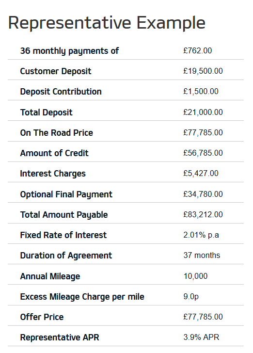 At the end of the agreement there are 3 options: (i) part exchange the vehicle, (ii) pay the Optional Final Payment to own the vehicle or (iii) return the vehicle. Further charges may be made subject to the condition or mileage of the vehicle.
