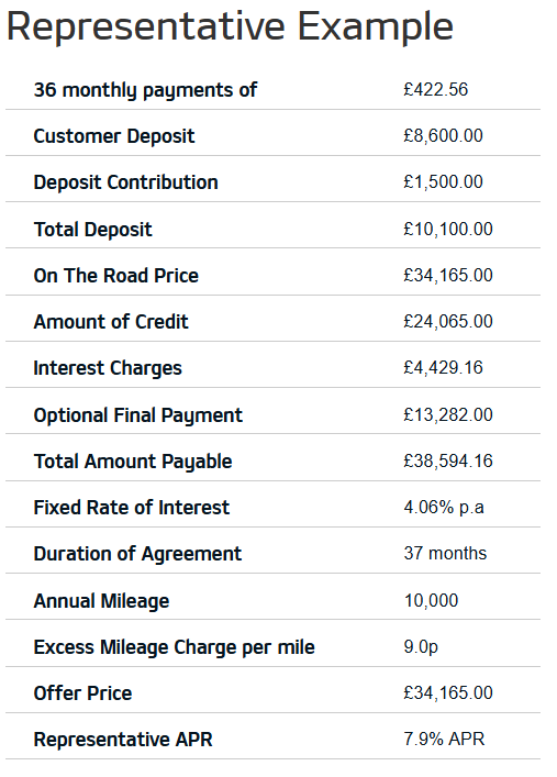 At the end of the agreement there are 3 options: (i) part exchange the vehicle, (ii) pay the Optional Final Payment to own the vehicle or (iii) return the vehicle. Further charges may be made subject to the condition or mileage of the vehicle.