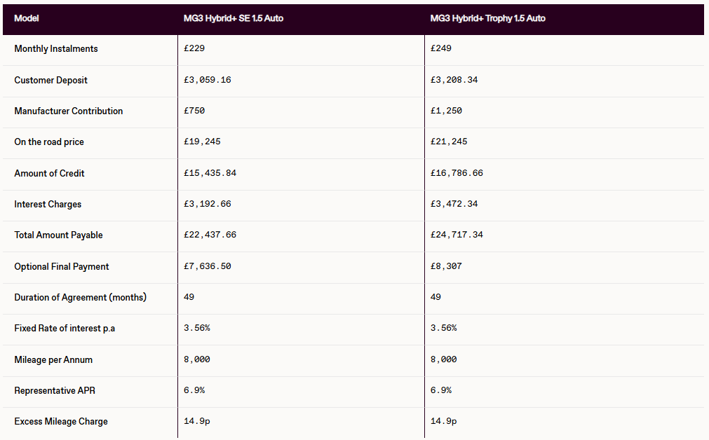 New MG3 Hybrid+ PCP Finance Offer