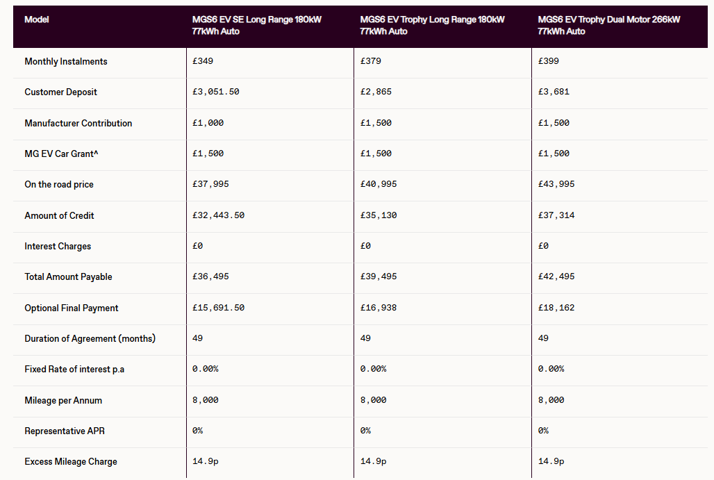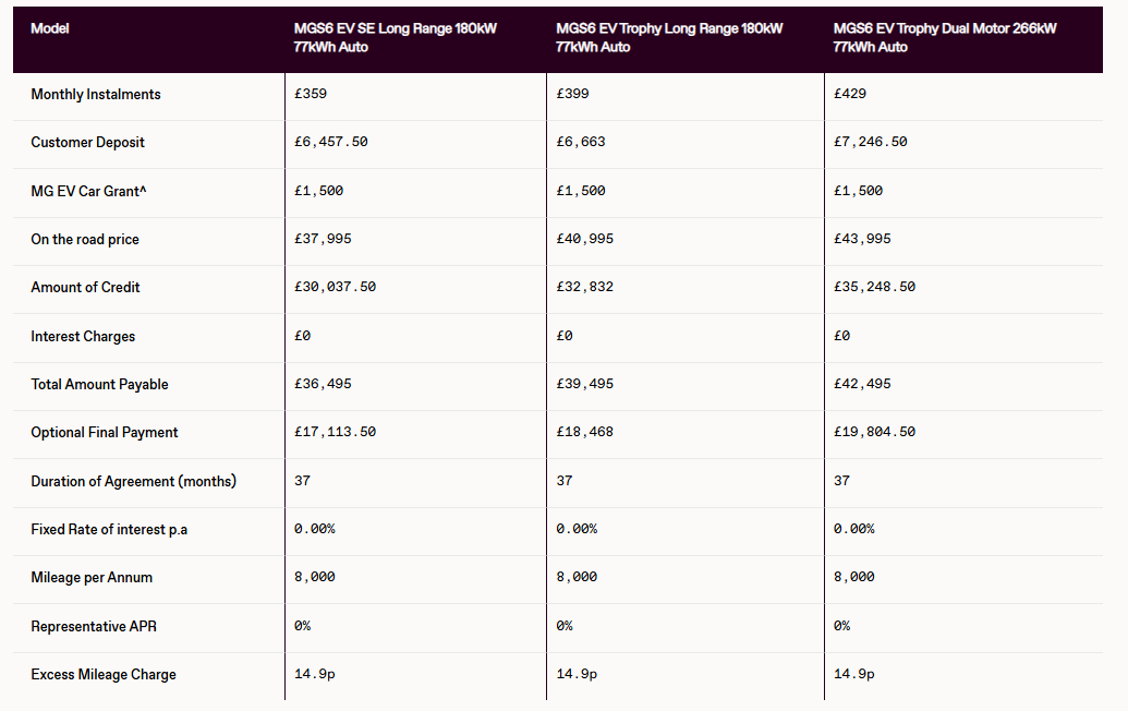 Get the brand new MGS6 EV with 0% APR* from Dicksons of Inverness. See below an example: