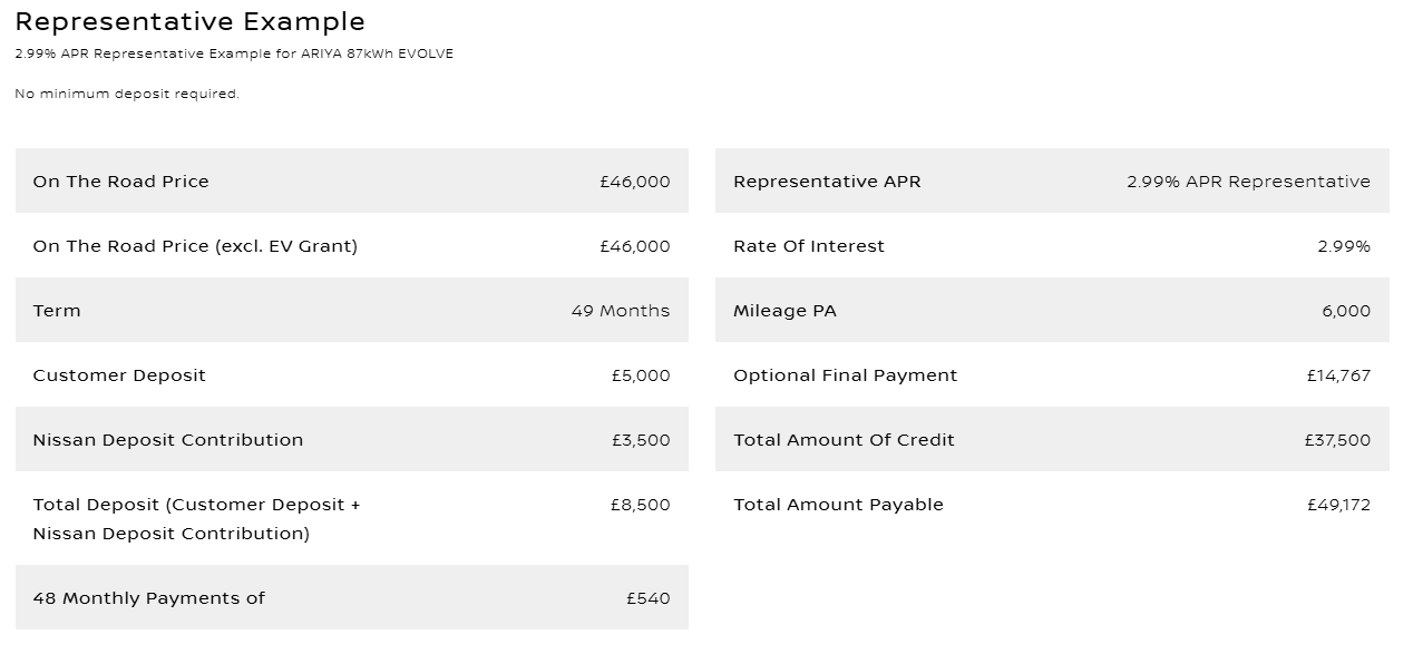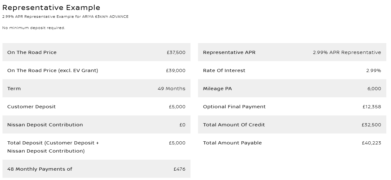 Representative example below for the ARIYA 63kWh ADVANCE**