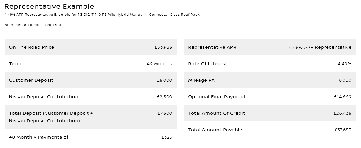 **Offer valid from 10th February 2026 until 31st March 2026 at participating dealers only and subject to vehicle availability. To be eligible, vehicles must be ordered by 31st March 2026 and registered by 30th June 2026. Finance provided by Nissan Financial Services, Rivers Office Park, Denham Way, Maple Cross, Rickmansworth, WD3 9YS. Subject to status. Guarantees and indemnities may be required. You must be at least 18 and a UK resident (excluding the Channel Islands). NISSAN DEPOSIT CONTRIBUTION OF £2,500 IS ONLY AVAILABLE WHEN TAKEN ON 4.49% APR REPRESENTATIVE PCP NISSAN FINANCIAL SERVICES PRODUCT AND IS AVAILABLE ON ALL N-CONNECTA MANUAL & XTRONIC VARIANTS ONLY . Offer based on 6,000 miles pa, excess mileage 8p per mile. Offers not available in conjunction with any schemes or other offers. Vehicle price includes first registration fee and 12 months’ road fund licence. Nissan reserves the right to amend or withdraw offers at any time without prior notice, including in the case of any events or circumstances beyond Nissan’s reasonable control. Terms and conditions apply. Please refer to your local authorised Nissan dealer for further information and exact specifications. Your Nissan dealer is a credit broker and not a lender and can introduce you to a limited number of lenders and their finance products. You must decide whether the finance product is right for you. Lenders will typically pay commission to your Nissan dealer, being either a fixed fee or a fixed percentage of the amount you borrow. Commission rates between lenders could vary, but the commission received by your Nissan dealer does not influence the interest rate you will pay.