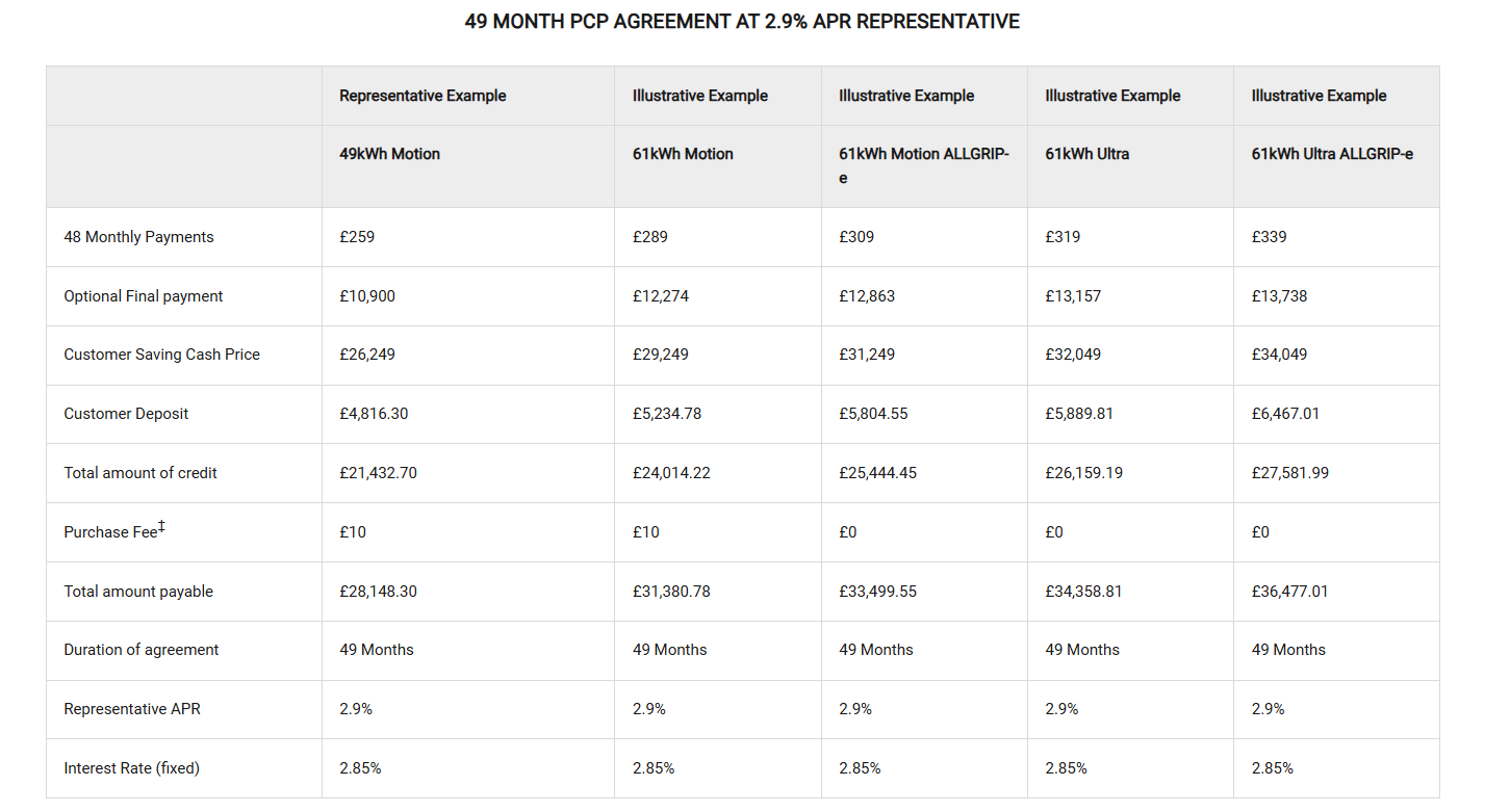 Exclusively at Dicksons, we're offering the new e Vitara on a PCP based with a customer deposit of only £2,800 needed on the SUZUKI e VITARA ESTATE 106kW Motion 49kWh 5dr Auto. Check out our finance table below or get in touch for more details: