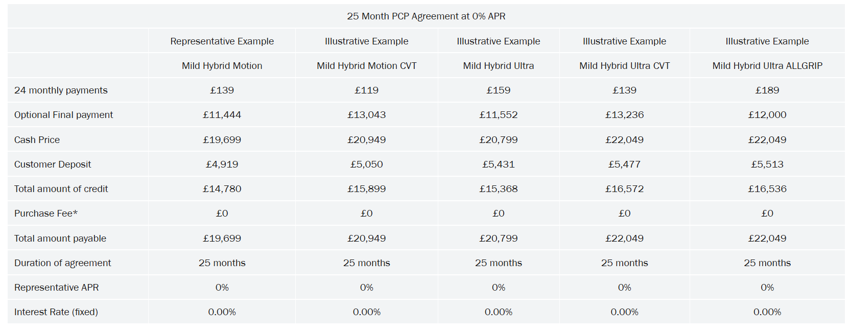 | Model | Customer Deposit | Suzuki Deposit Contribution | Monthly Payments | Term | Annual Mileage | APR Representative |